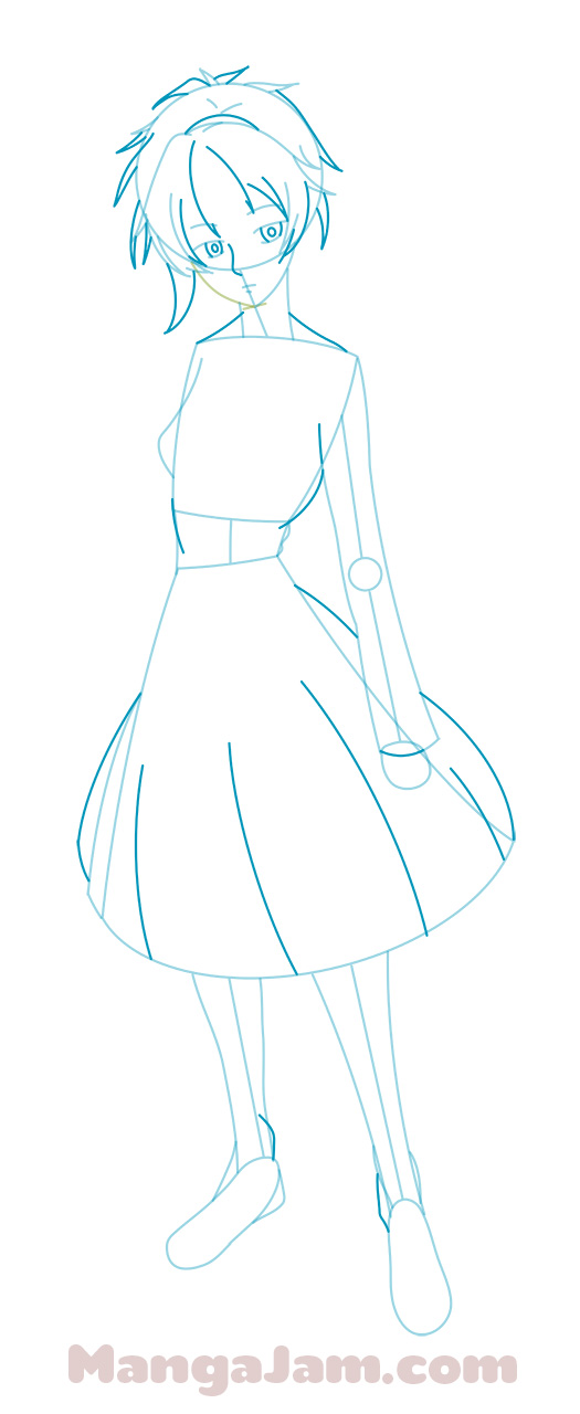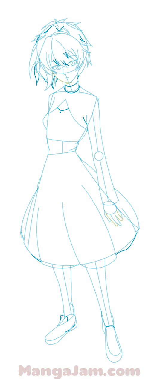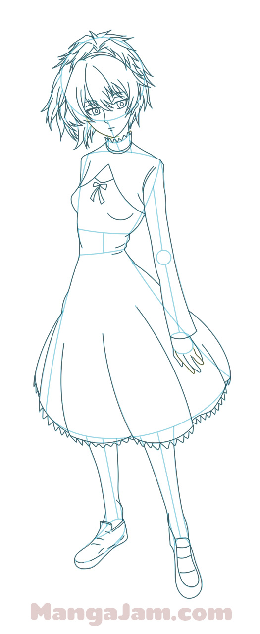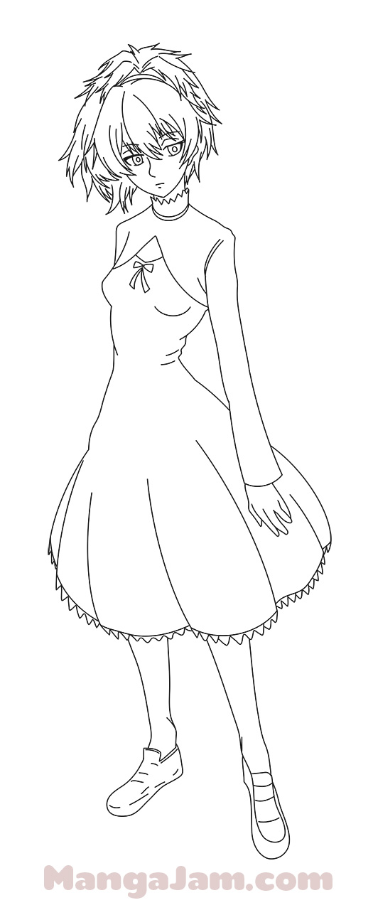 If your goal is to become a real Mangaka and design your own manga characters make sure to try to draw Yin from memory several times. Always compare the drawing to the original and correct any mistakes you see. Do this till you are happy with the result. It doesn’t have to look exactly the same, don’t sweat the details. The point is that you get the main shapes right and that it looks good. This is the best way to build a huge library of manga shapes in your memory that you can use to draw and design your own manga characters ^_-.