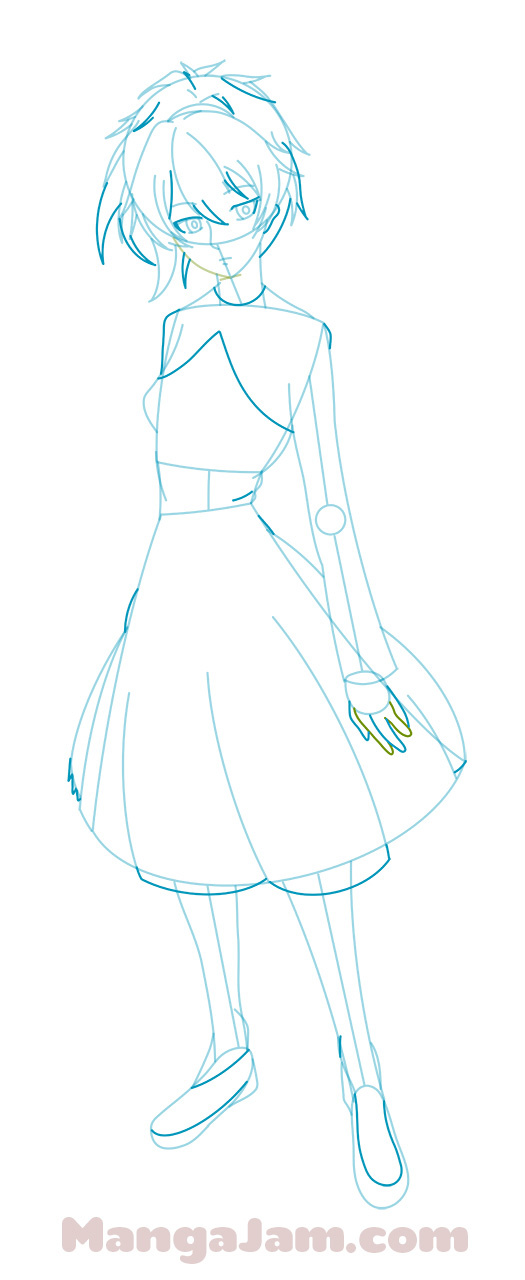 As always all the blue and green lines are just construction lines and will be erased later so do not push on your pencil too much ^_^ I will try to be super efficient with the text so will only describe steps that require some explanation.