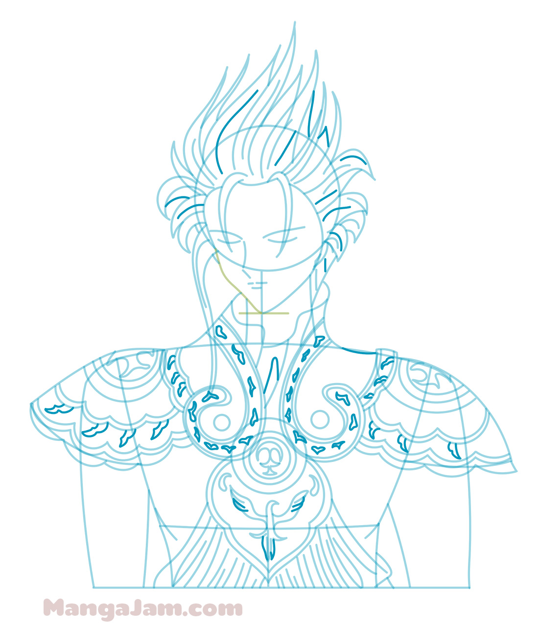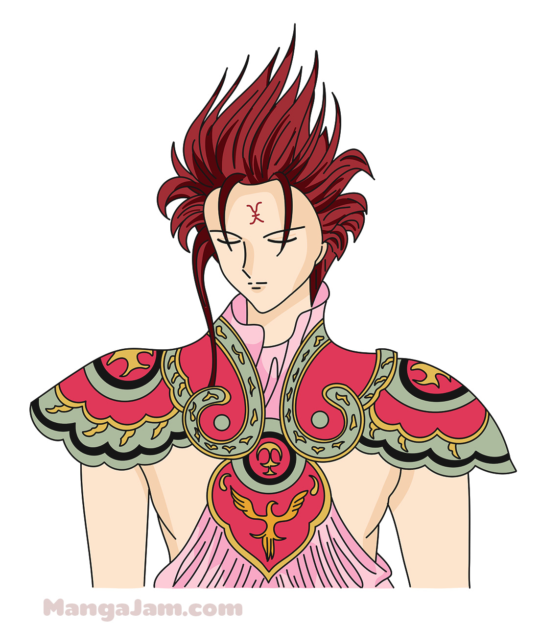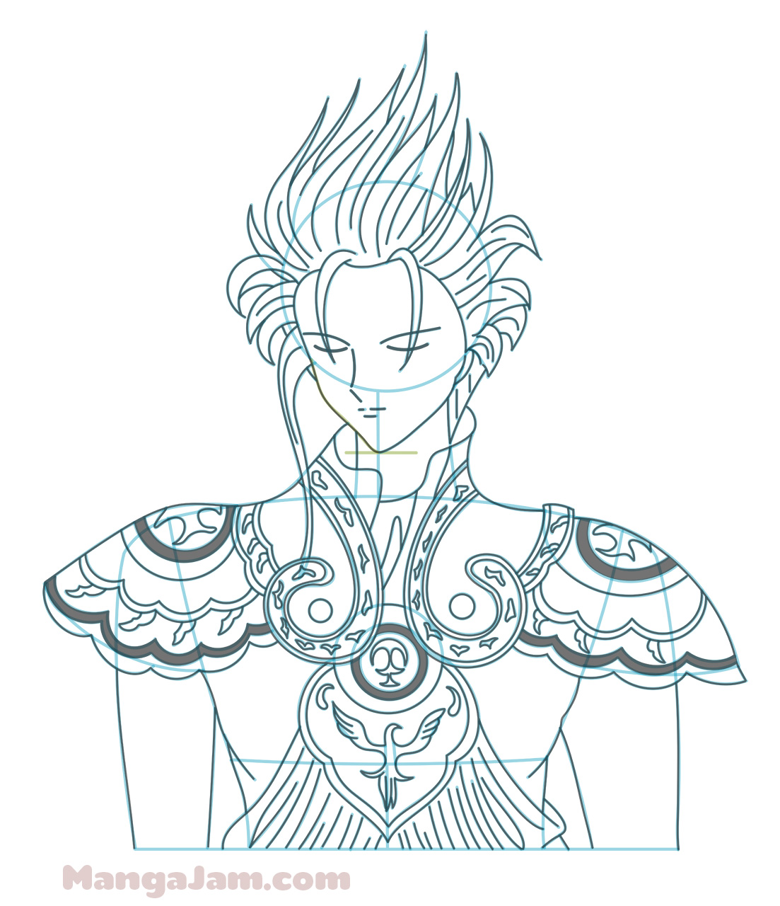 If your goal is to become a real Mangaka and design your own manga characters make sure to try to draw Suzaku from memory several times. Always compare the drawing to the original and correct any mistakes you see. Do this till you are happy with the result. It doesn’t have to look exactly the same, don’t sweat the details. The point is that you get the main shapes right and that it looks good. This is the best way to build a huge library of manga shapes in your memory that you can use to draw and design your own manga characters ^_-.