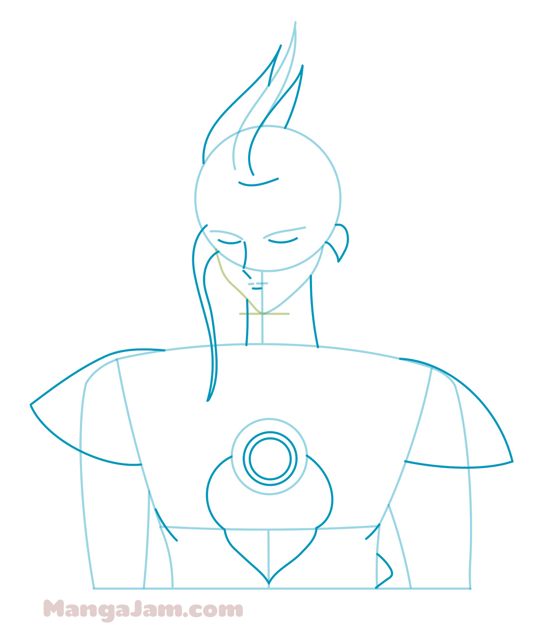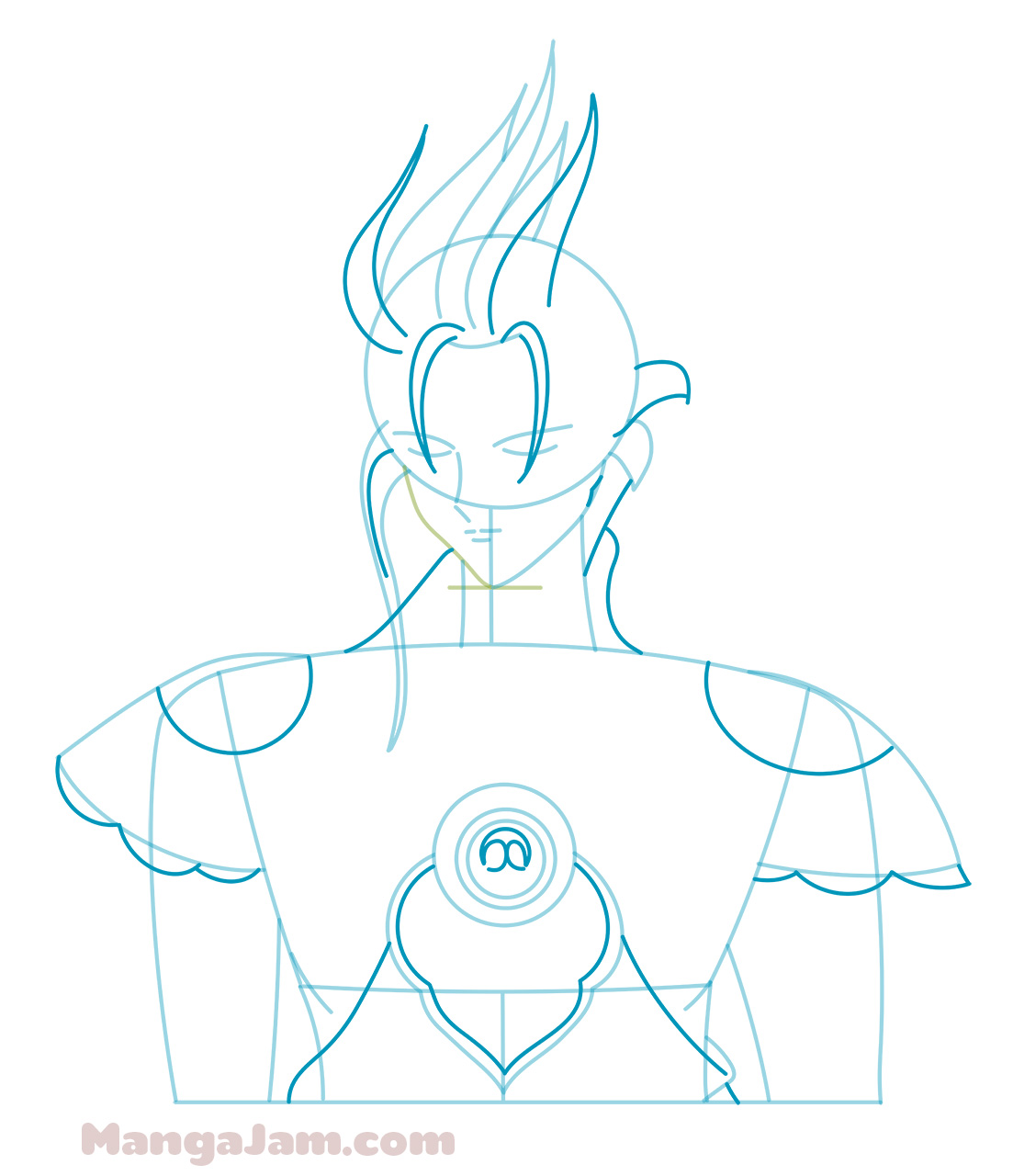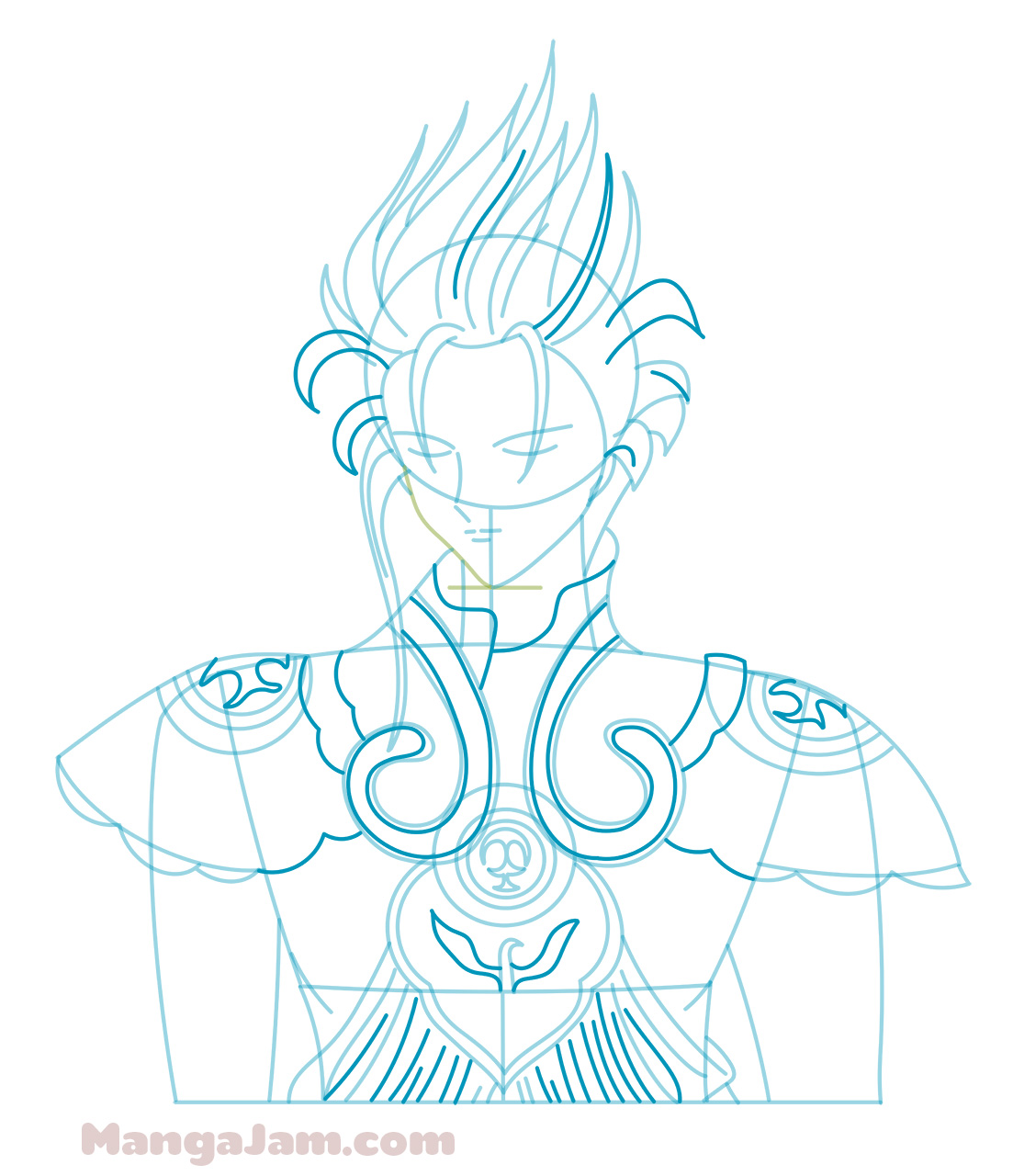 If your goal is to become a real Mangaka and design your own manga characters make sure to try to draw Suzaku from memory several times. Always compare the drawing to the original and correct any mistakes you see. Do this till you are happy with the result. It doesn’t have to look exactly the same, don’t sweat the details. The point is that you get the main shapes right and that it looks good. This is the best way to build a huge library of manga shapes in your memory that you can use to draw and design your own manga characters ^_-.