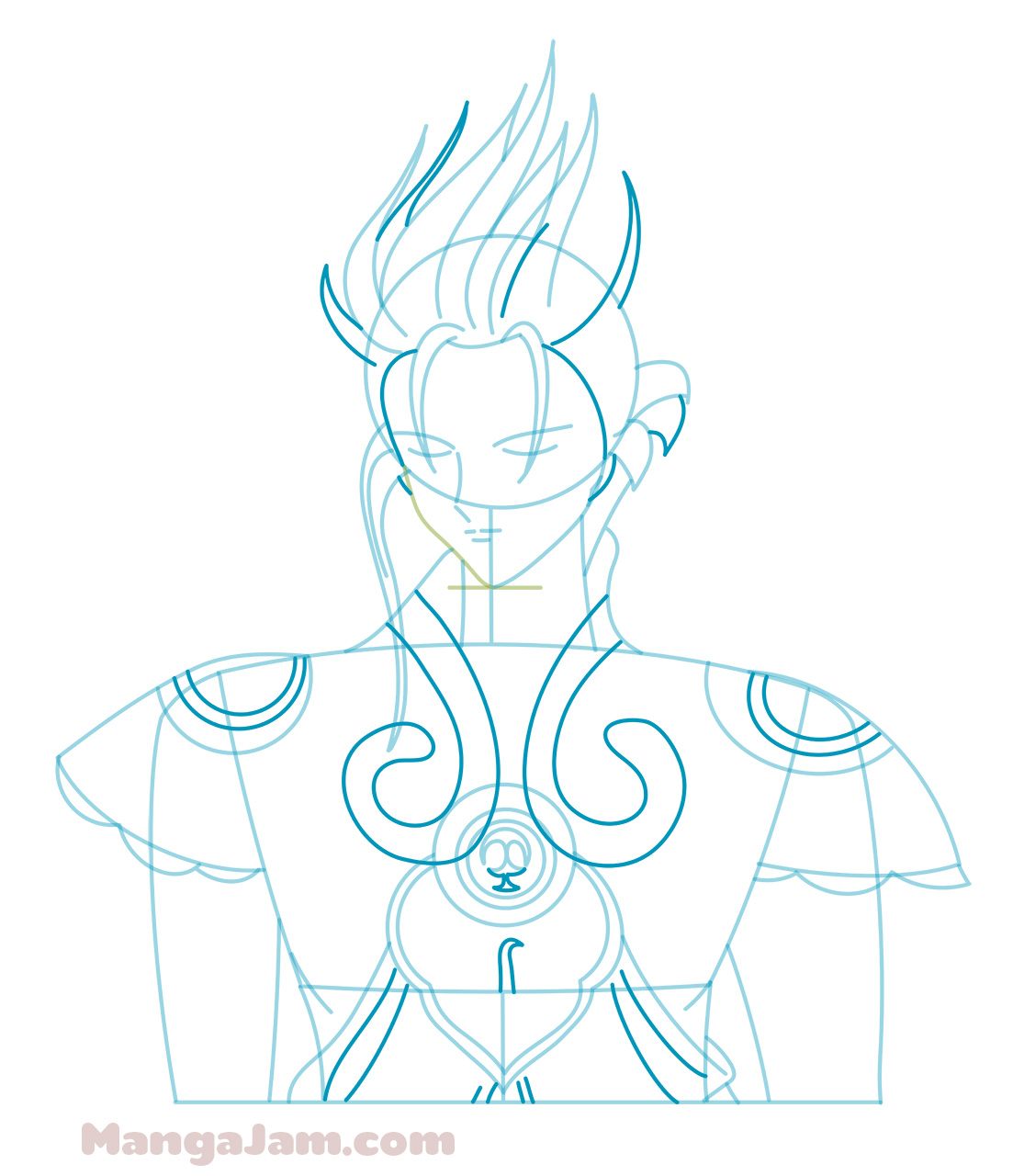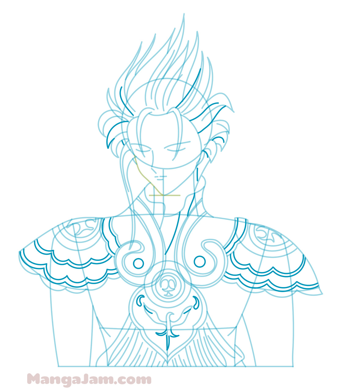 As always all the blue and green lines are just construction lines and will be erased later so do not push on your pencil too much ^_^ I will try to be super efficient with the text so will only describe steps that require some explanation.